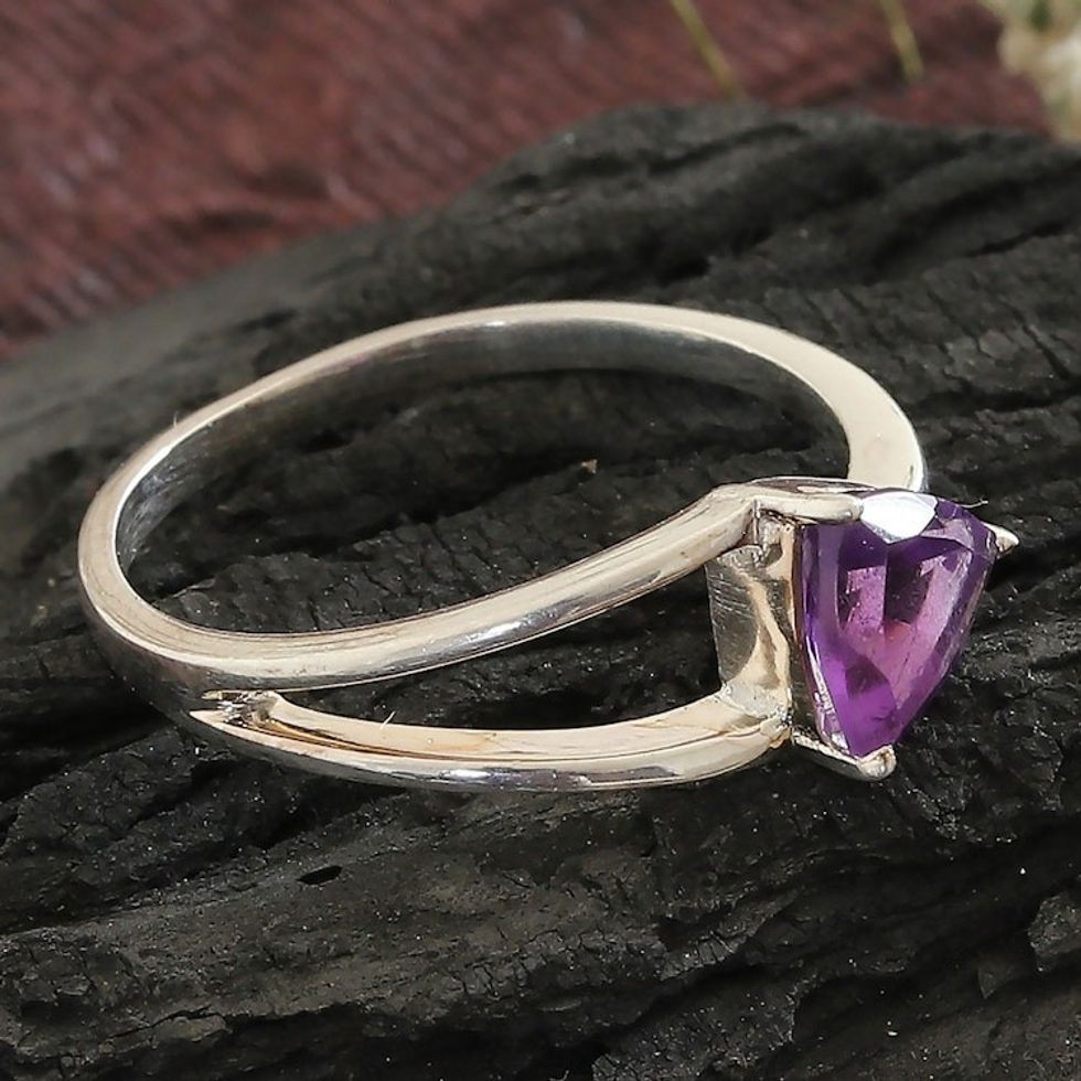 Triangle-Cut One-Carat Amethyst Solitaire Ring from India 'Wise Triangle' Item ID: 2671667743
