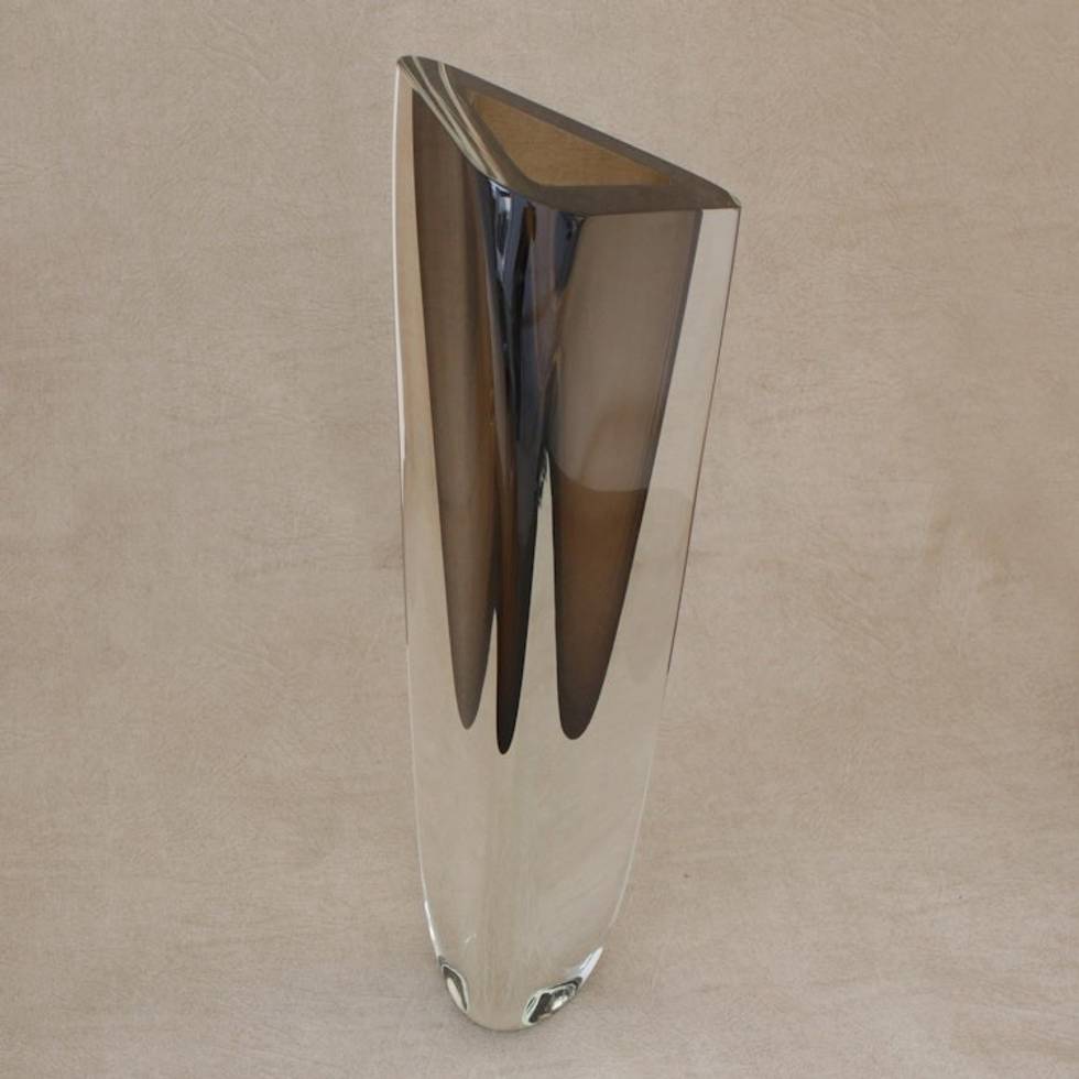 Triangular Art Glass Vase from Brazil 15 Inch 'Smoky Triangle' Item ID: 2669935494