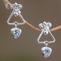 Triangular Blue Topaz Dangle Earrings from Bali 'Triangle Dew' Item ID: 2671736599