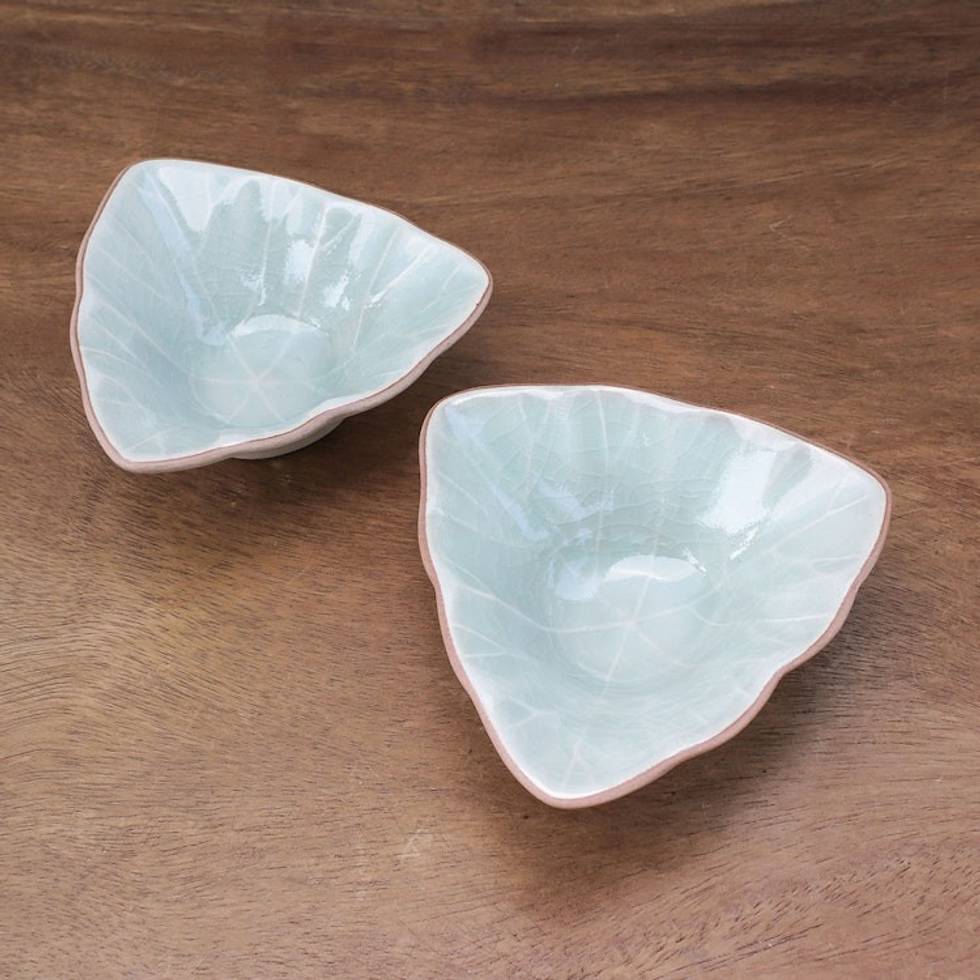 Triangular Celadon Green Ceramic Condiment Servers Pair 'Luxe Leaves in Green' Item ID: 2671798768