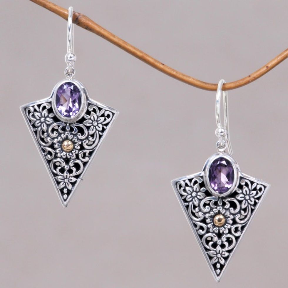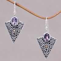 Triangular Dangle Earrings with Amethysts in Sterling Silver 'Miracle' Item ID: 2669887303