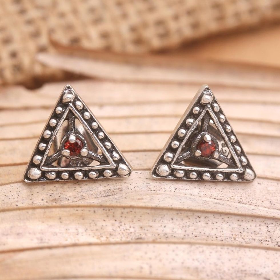 Triangular Garnet Stud Earrings 'A-cute Style' Item ID: 2671747798