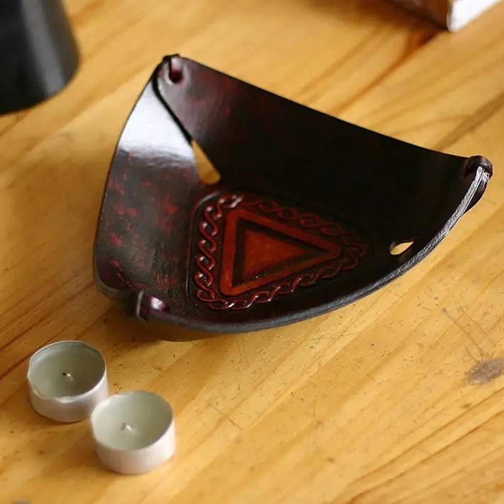 Triangular Hand Tooled Leather Catch All from Peru 'Pyramid Chains' Item ID: 2671820200