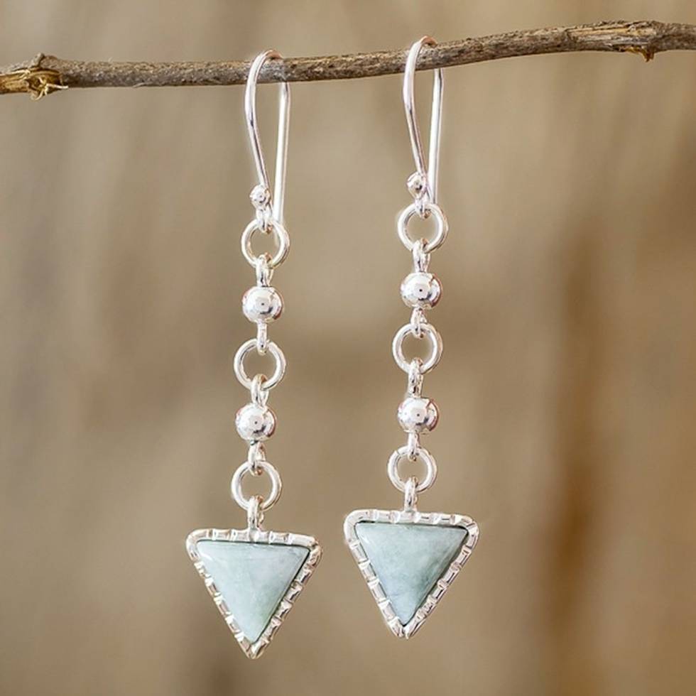 Triangular Jade Dangle Earrings from Guatemala 'Maya Chains in Light Green' Item ID: 2671776885