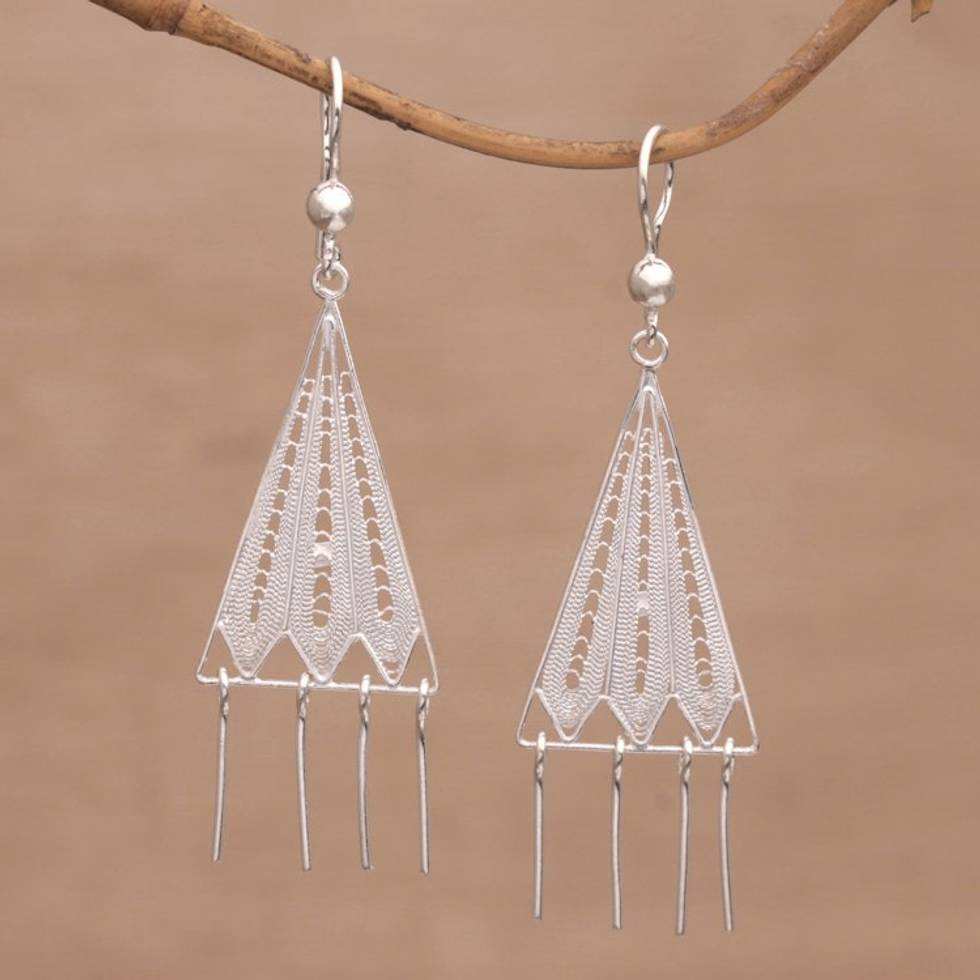Triangular Sterling Silver Chandelier Earrings from Bali 'Triangle Jellyfish' Item ID: 2671735038
