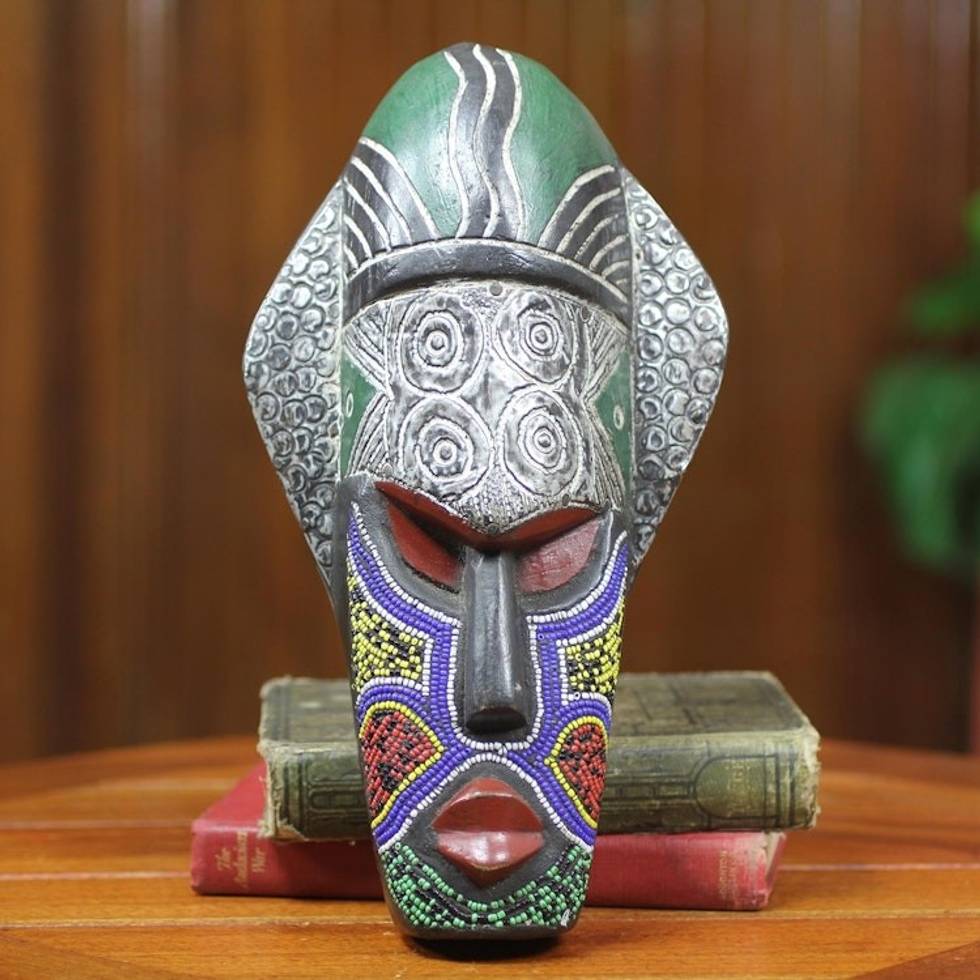 Tribal Chief African Mask Beaded Wood 'Landa' Item ID: 2671806963