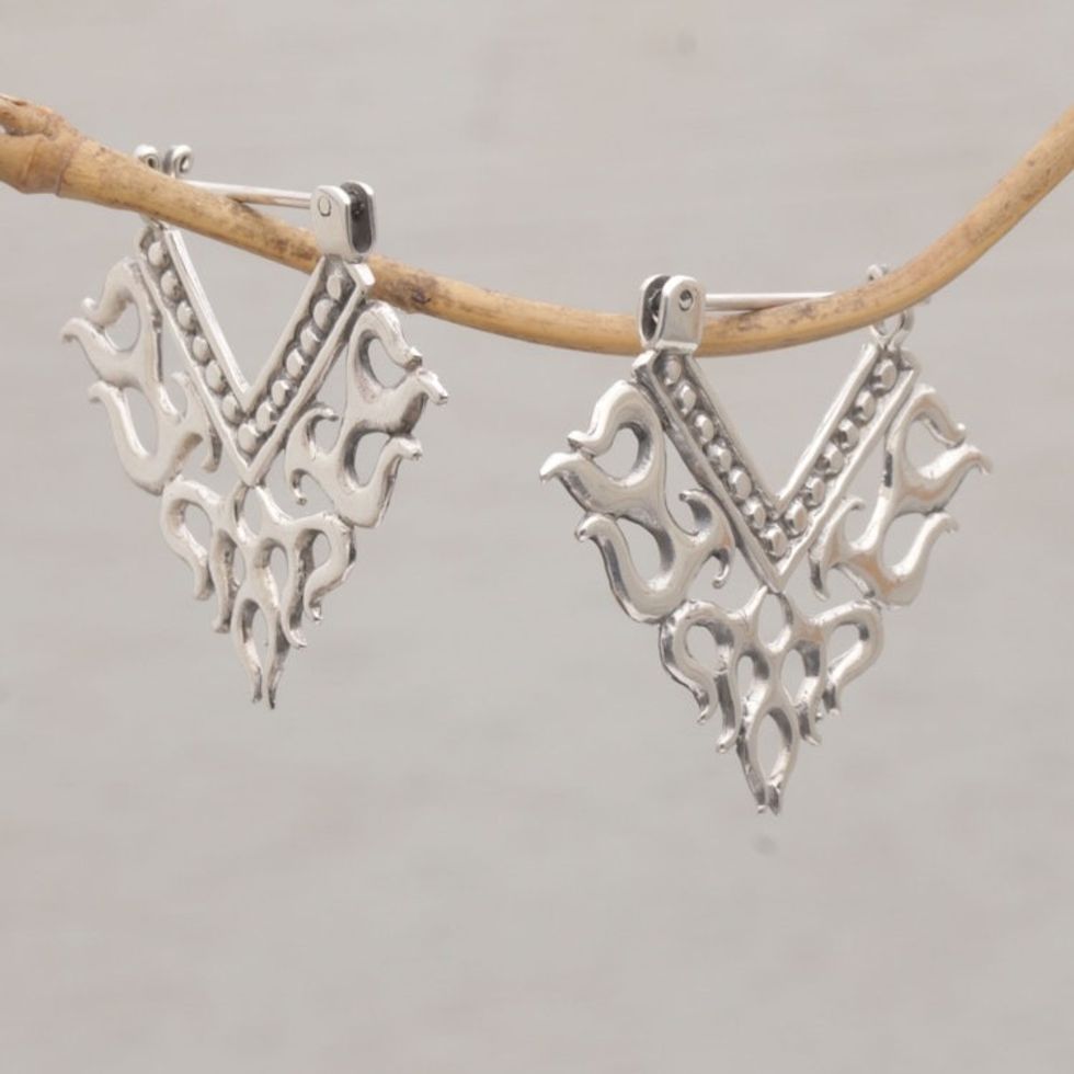 Tribal Style Sterling Silver Hoop Earrings from Bali 'Tribal Fire' Item ID: 2671820982