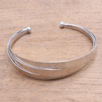 Triple Arc Hammered Finish Sterling Silver Cuff Bracelet 'Merging Paths' Item ID: 2671821553
