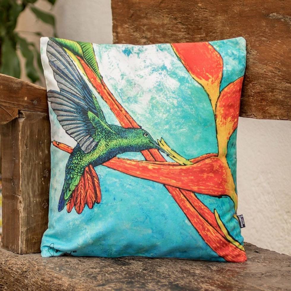 Tropical Themed Cushion Cover from Costa Rica 'Oneiric Hummingbird' Item ID: 2671771802