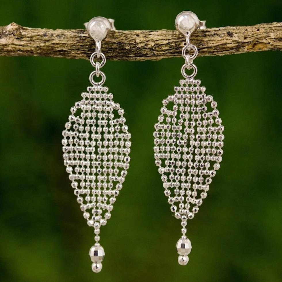 Tulip Inspired Thai Sterling Silver Dangle Earrings 'Tulip Petal' Item ID: 2671802043