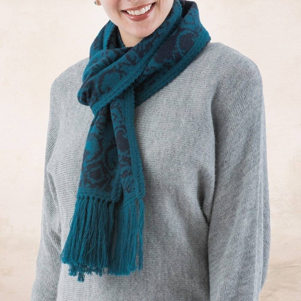 Turquoise and Blue Reversible Alpaca Blend Jacquard Scarf 'Turquoise and Blueberry' Item ID: 2669908195
