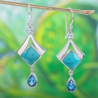 Turquoise and Blue Topaz 950 Silver Dangle Earrings 'Mixed Blues' Item ID: 2671640527