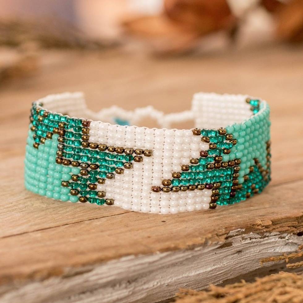 Turquoise and White Glass Beaded Star Wristband Bracelet 'Paradisial Blast' Item ID: 2671768856