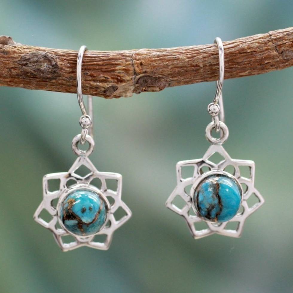 Turquoise Color Earrings Hand Crafted in Sterling Silver 'Star of Gujurat' Item ID: 2669943789
