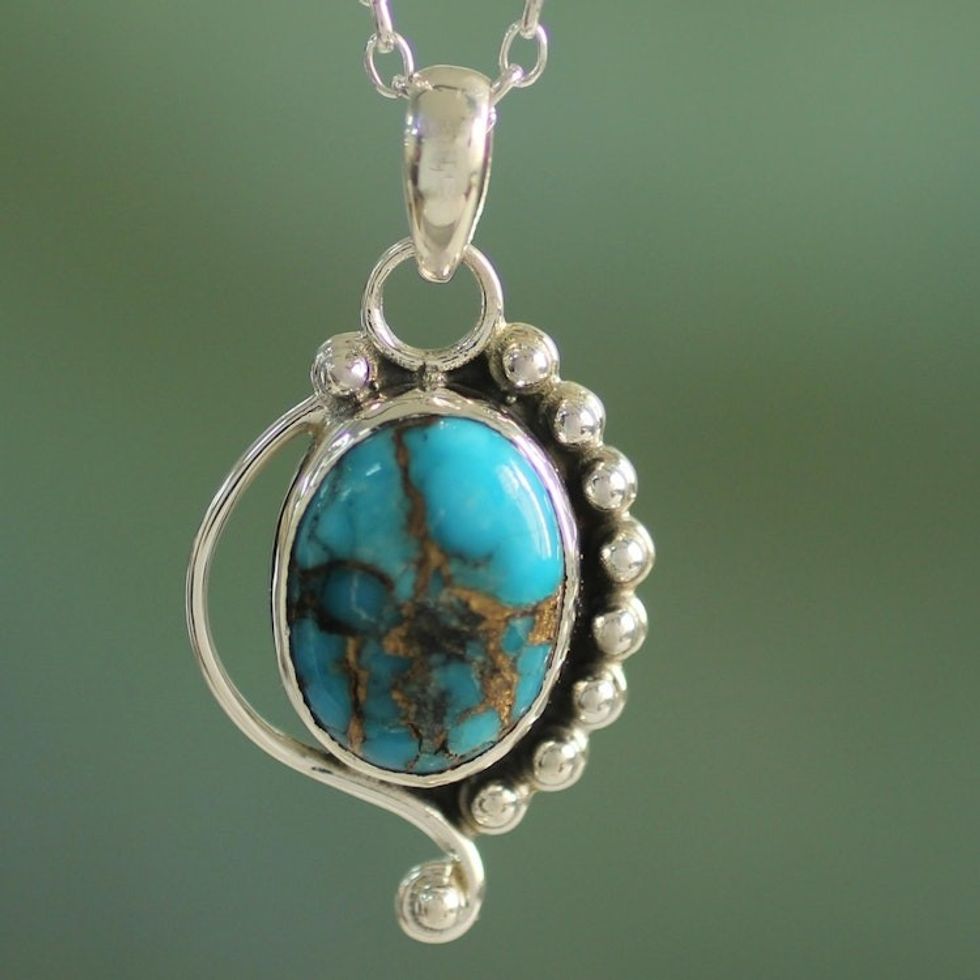 Turquoise Jewelry Indian Sterling Silver Necklace 'Blue Indian Paisley' Item ID: 2671793623