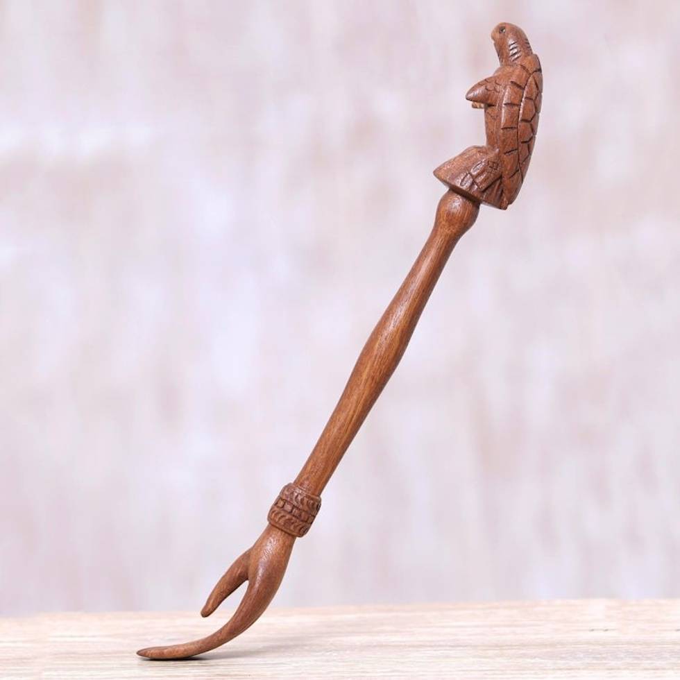 Turtle Themed Wood Back Scratcher Hand Carved in Bali 'Turtle Relief in Natural' Item ID: 2671821460