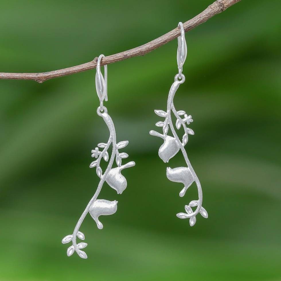 Twin Bird Sterling Silver Dangle Earrings from Thailand 'Twin Birds' Item ID: 2671798489