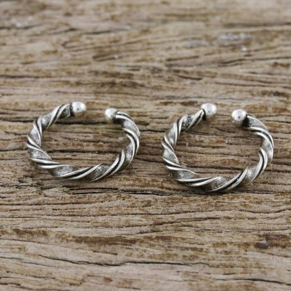 Twisting Sterling Silver Ear Cuffs from Thailand 'Stylish Twist' Item ID: 2669926714