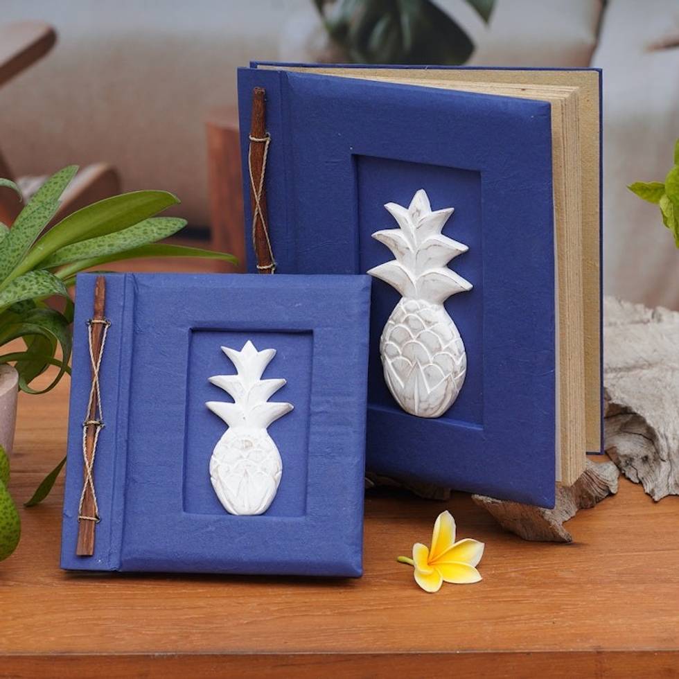 Two Albesia Wood Indonesian Pineapple Photo Albums in Blue 'Pineapple Dreams in Blue' Item ID: 2671733521