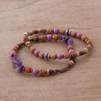 Two Amethyst and Ceramic Beaded Stretch Bracelets from Peru 'Andean Joy' Item ID: 2671402683