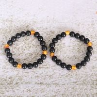 Two Black and Yellow Recycled Glass Beaded Stretch Bracelets 'Galaxy Glam' Item ID: 2671804215