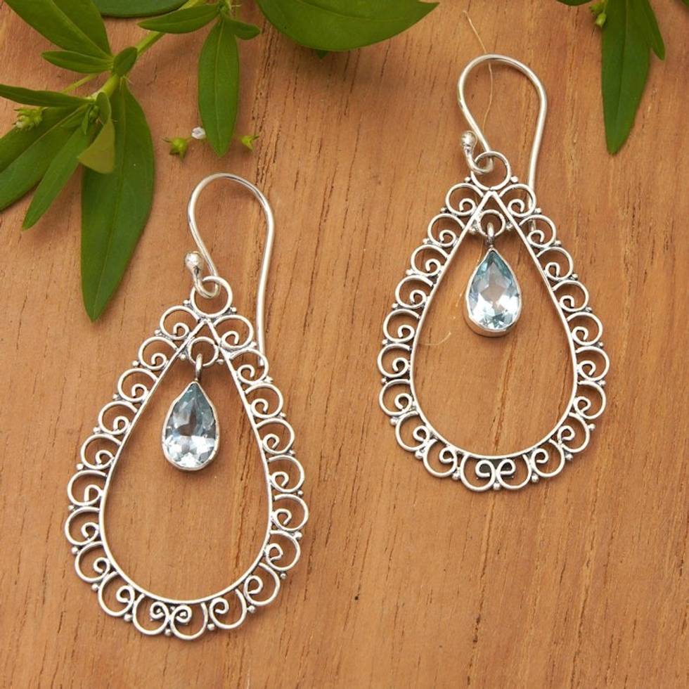 Two Carat Blue Topaz and Sterling Silver Earrings 'Celuk Gate' Item ID: 2671732856