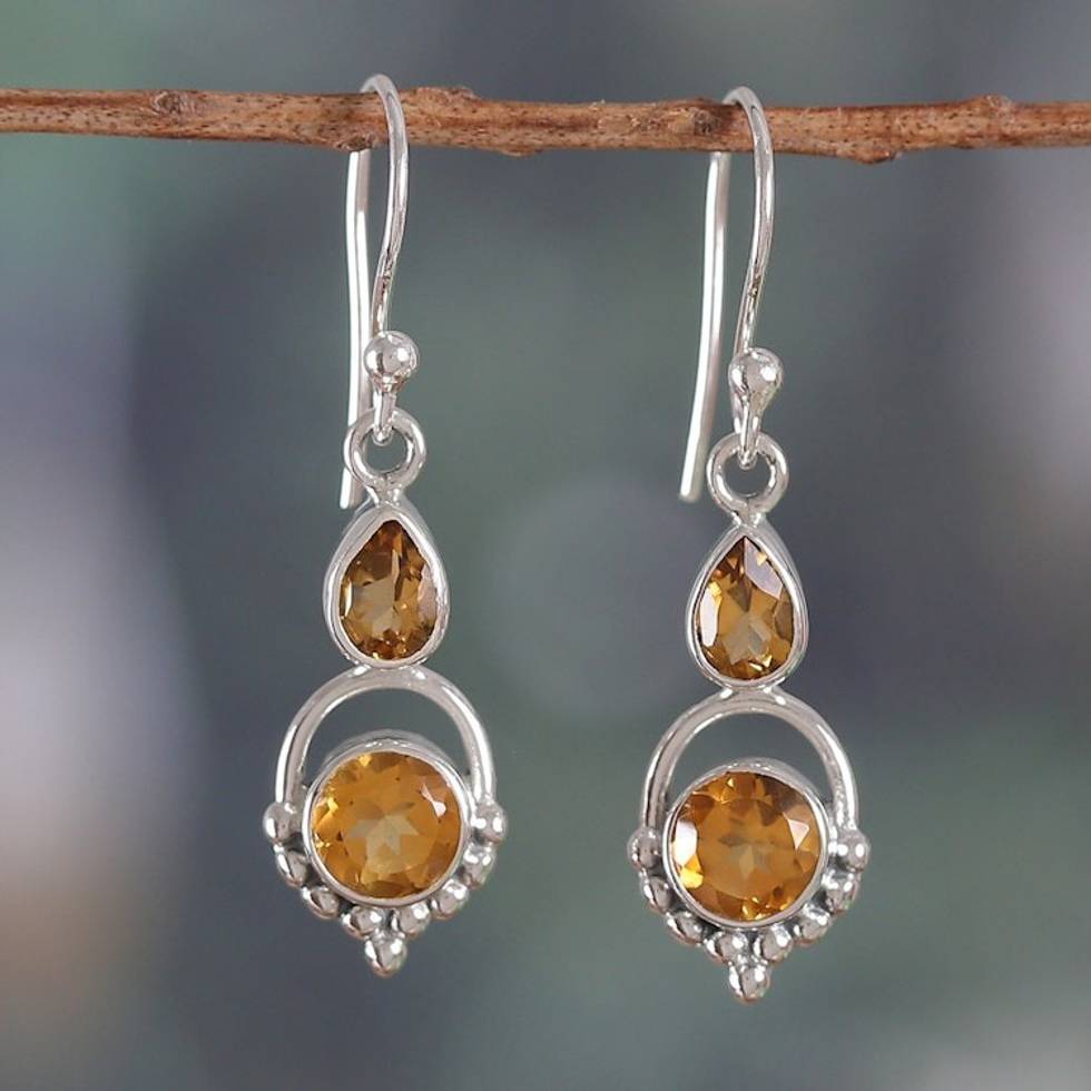 Two-Carat Faceted Pear and Round Citrine Dangle Earrings 'Successful Yellow' Item ID: 2671782815