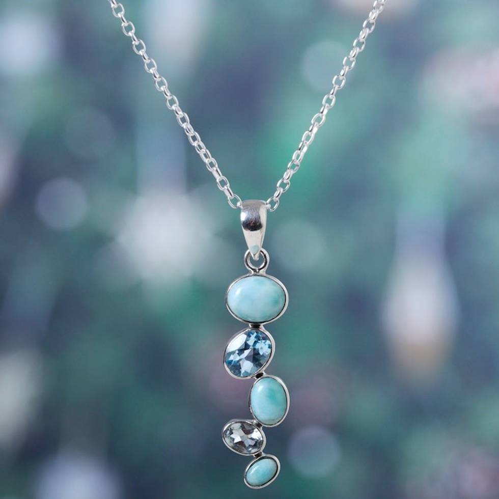 Two-Carat Larimar and Faceted Blue Topaz Pendant Necklace 'Blue Pinnacle' Item ID: 2669923848