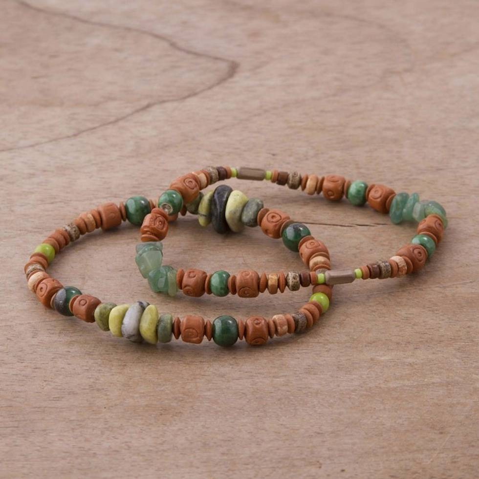Two Ceramic Beaded Bracelets with Agate and Serpentine 'Wind and Earth' Item ID: 2671695462