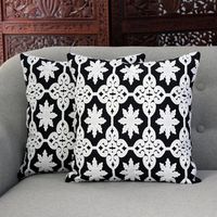 Two Embroidered Cotton Cushion Covers in Black and White 'Midnight Royalty' Item ID: 2671789383