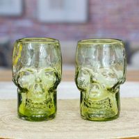 Two Handblown Recycled Glass Skull Tumblers in Lime Green 'Green Mexican Skull' Item ID: 2671639167