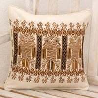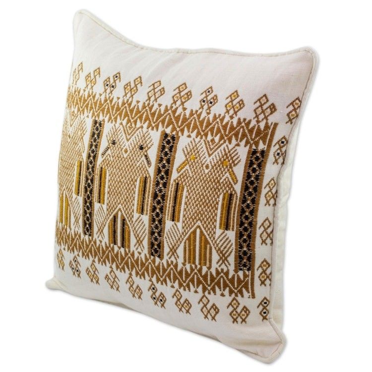 Two-headed Maya Eagle on Alabaster Cotton Cushion Cover 'Kot, Divine Eagle' Item ID: 2671780244