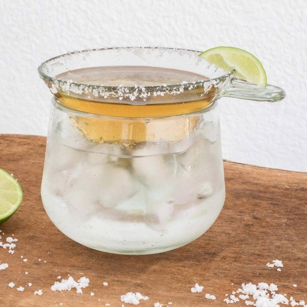 "Working with recycled glass, Guatemala's Emma Gutierrez creates this fabulous glass which is designed for the perfect martini or margarita. The cone-shaped glass rests atop a vessel designed to hold ice, which allows you to chill your cocktail without watering it down."