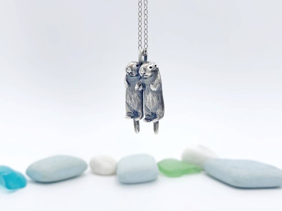 Two Silver Otters Holding Hands Necklace Item ID: 2670052818