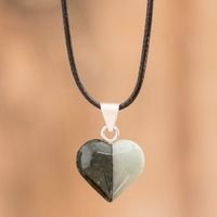 Two-Tone Jade Heart Pendant Necklace with Silver Accents 'Heart Appeal' Item ID: 2671771586