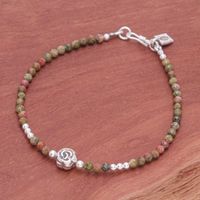 Unakite and Karen Silver Beaded Bracelet 'Earthy Silver' Item ID: 2671799722