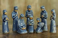 Unique 8-piece Celadon Ceramic Nativity Scene 'Thai Holy Birth in Blue' Item ID: 2669927534