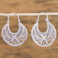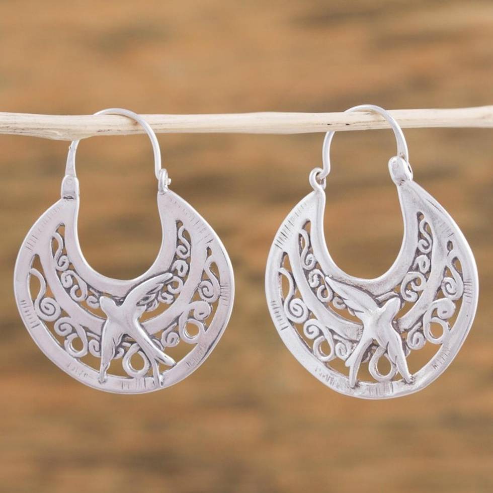 Unique Animal Themed Vintage Style Silver Bird Hoop Earrings 'Peaceful Doves' Item ID: 2669927055