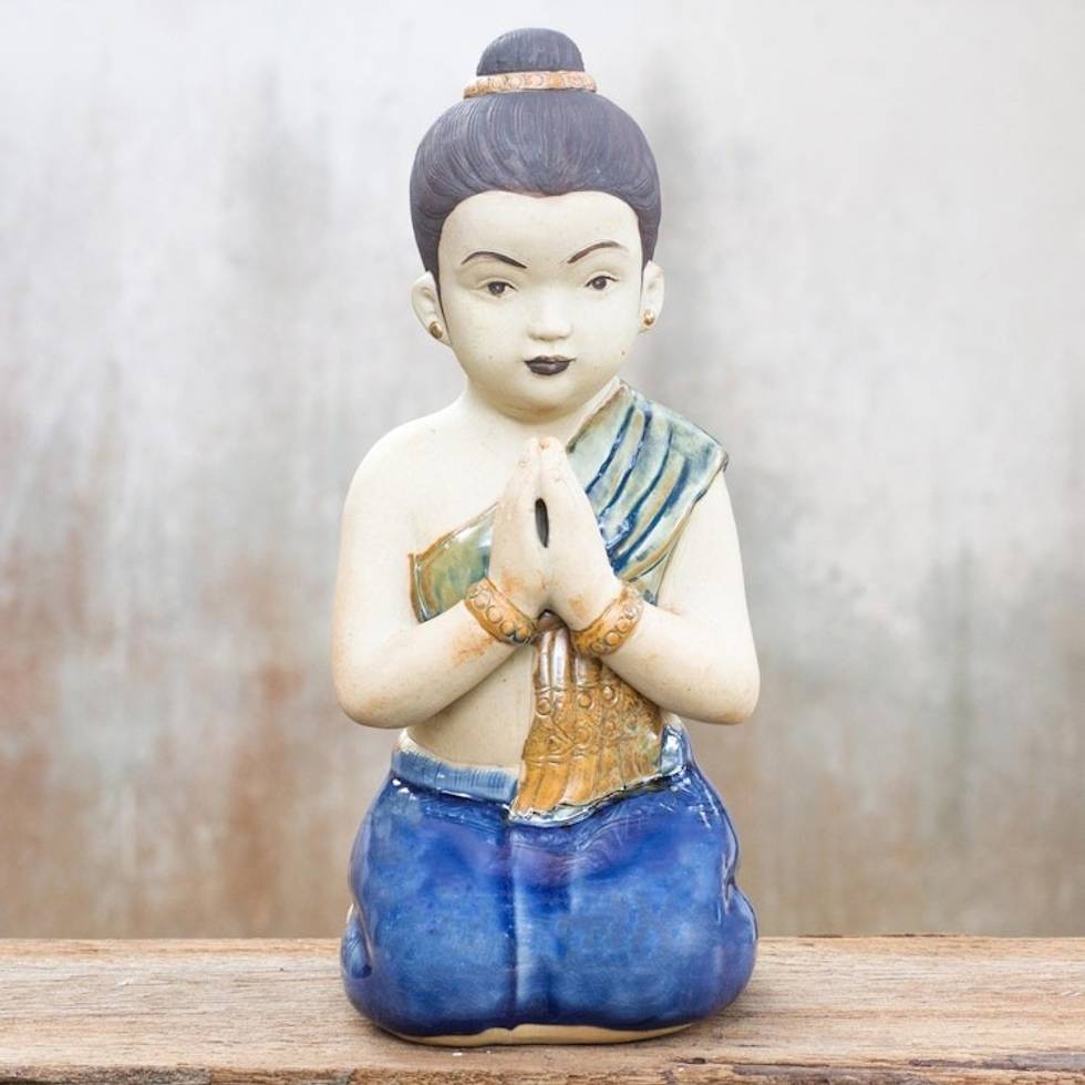 Unique Celadon Ceramic Sculpture 'Thai Sawasdee Girl' Item ID: 2671802673