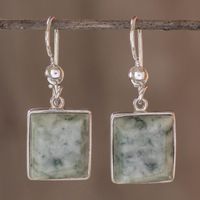 Unique Central American Sterling Silver Dangle Jade Earrings 'Maya Treasure' Item ID: 2671777480