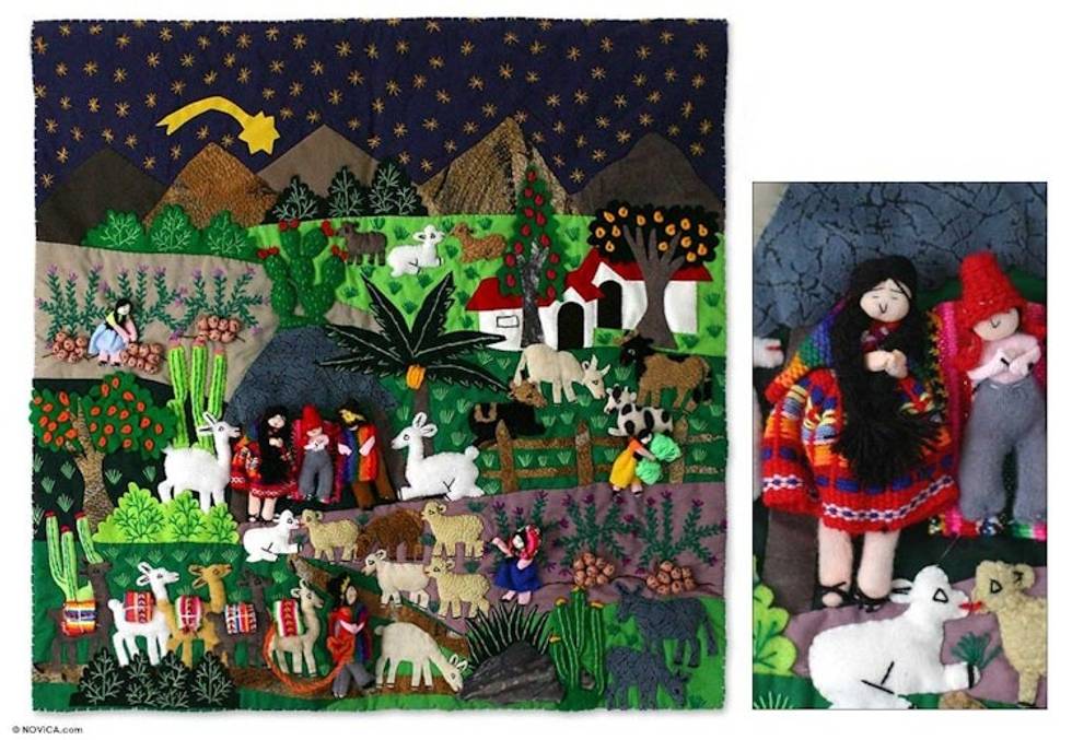 This applique wall tapestry is so much more vibrant than the picture represents. The artist's use of color and fabric choice to depict the humble nativity juxtaposed against the affluence of the wise men is excellent. There is a lot of detail in this piece that genuinely reflects the confluence of all creation for the birth of Christ. I am so glad that I purchased it. Thanks to the artist for thi... read more