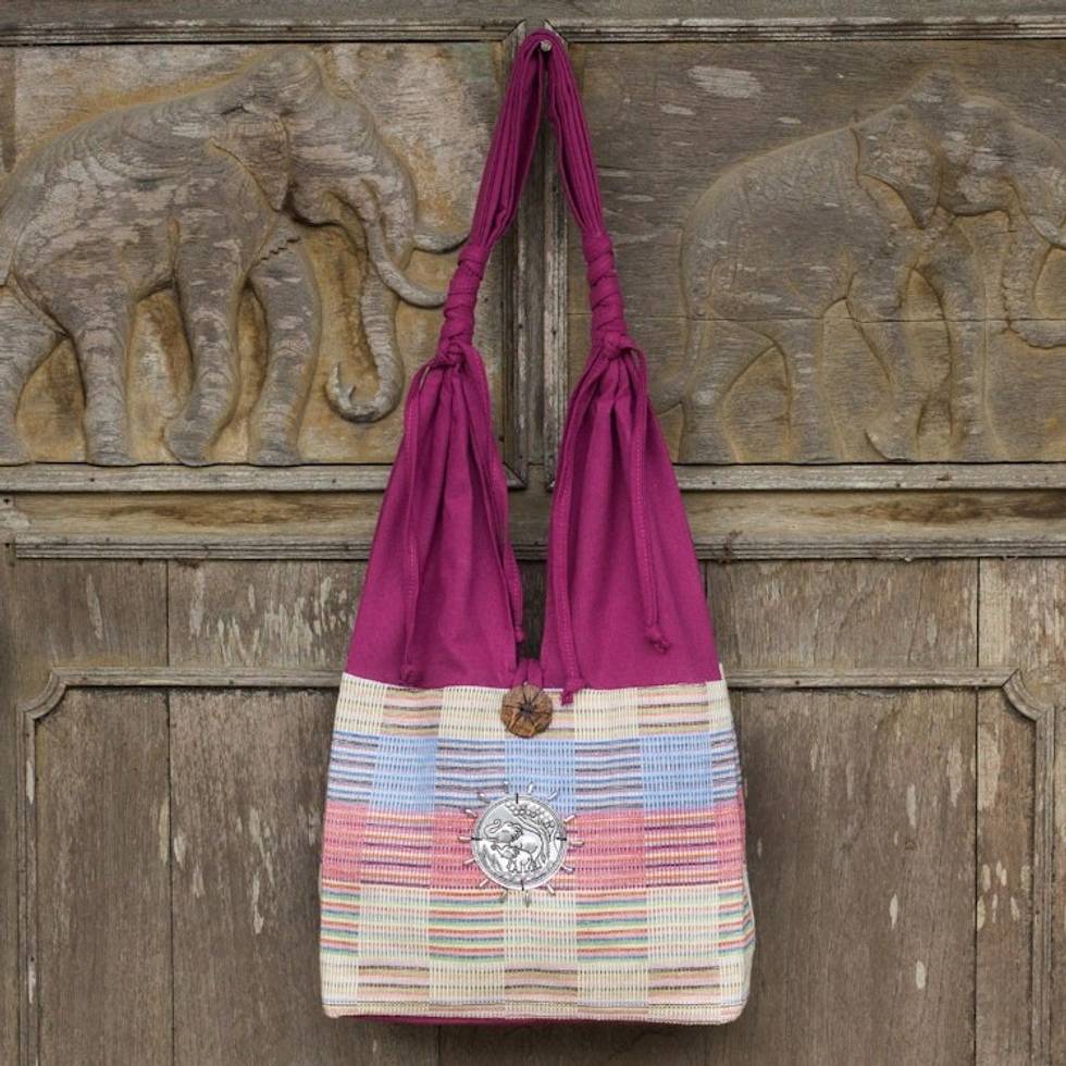 Unique Cotton Shoulder Bag from Thailand 'Siamese Blush' Item ID: 2669925828