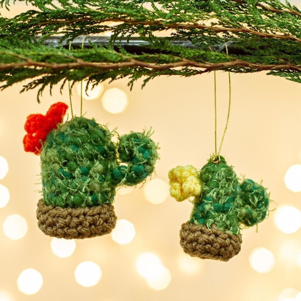 Unique Crocheted Cactus Christmas Ornaments Pair 'Christmas Cacti' Item ID: 2671808061