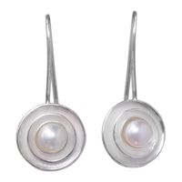 Unique Cultured Pearl and Silver Drop Earrings from Bali 'Lunar Halo' Item ID: 2671702518