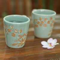 Unique Floral Ceramic Coffee Mugs Pair 'Golden Orchid' Item ID: 2671641548