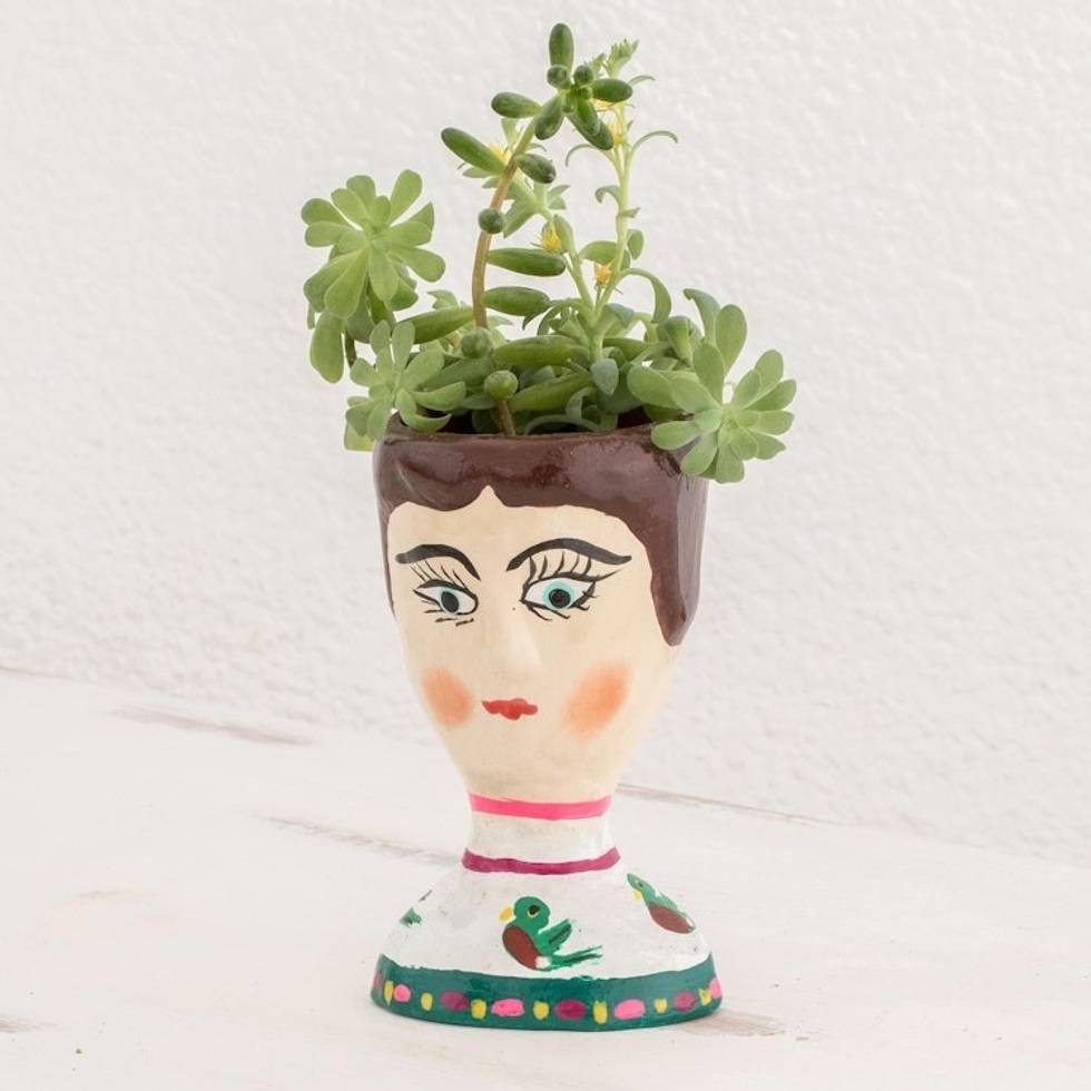 "Claudia Espana of Guatemala takes inspiration from the Baile de los Gigantes, or 'Dance of the Giants', in the creation of this wonderful small planter. The colorful procession of oversized figures takes place in Guatemala during the celebrations of Corpus Christ and Christmas. The planter is crafted from ceramic and carefully painted by hand."