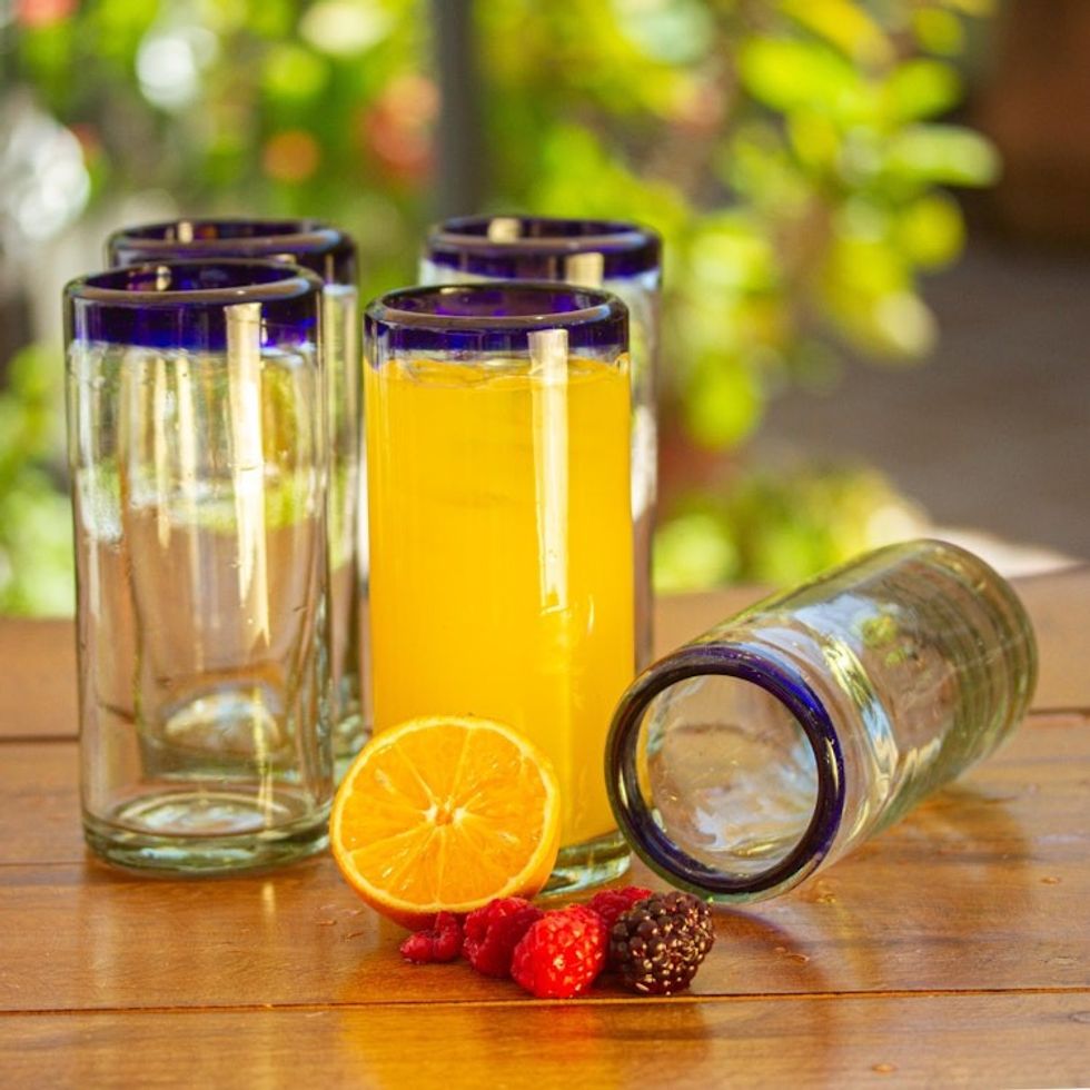 Unique Handblown Glass Blue Rim Highball Tumbler 'Cobalt Classics' Item ID: 2669932228