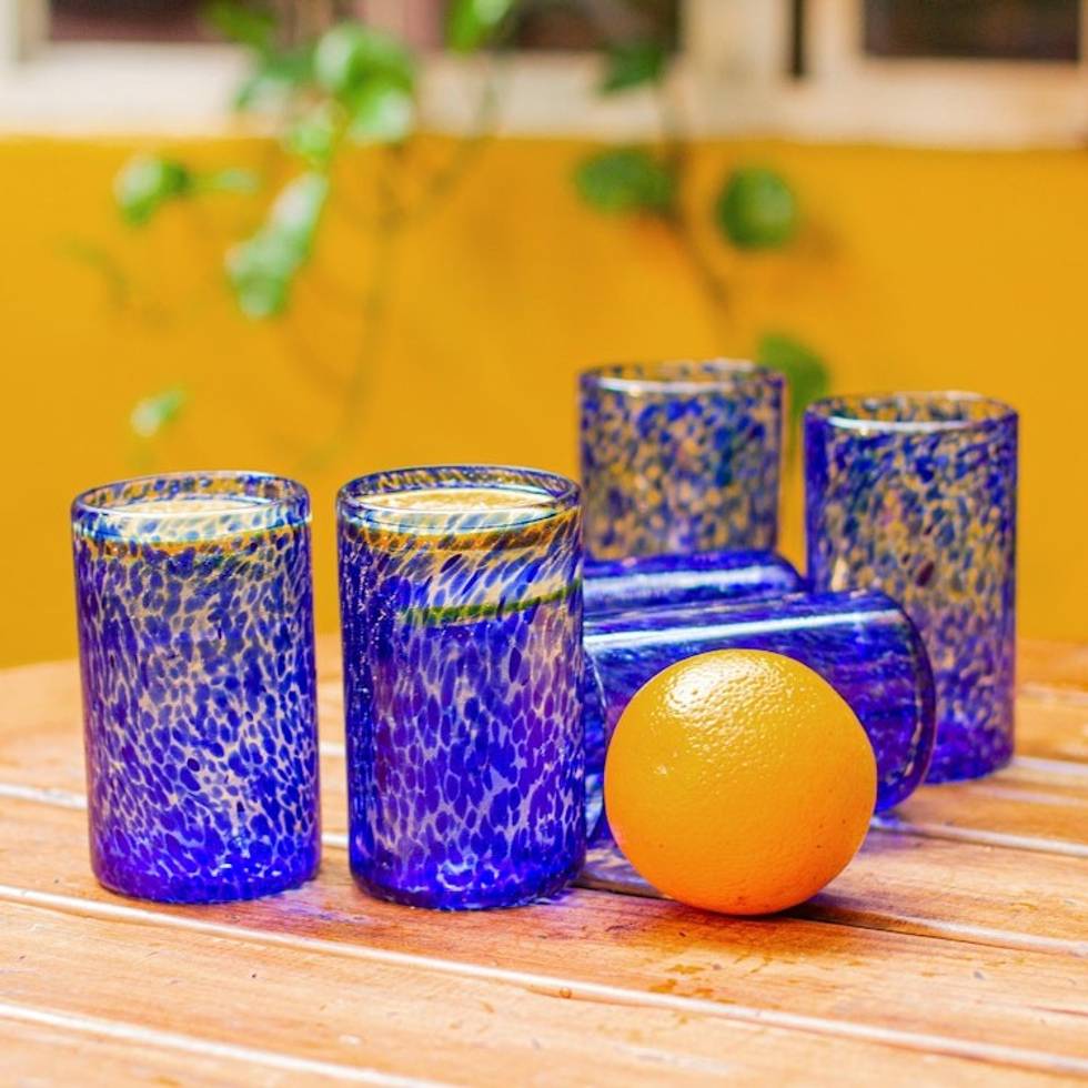 Unique Handblown Glass Water Tumblers Drinkware Set of 6 'Marine' Item ID: 2669933103