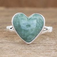Unique Heart Shaped Sterling Silver Jade Cocktail Ring 'Love Immemorial' Item ID: 2671626423