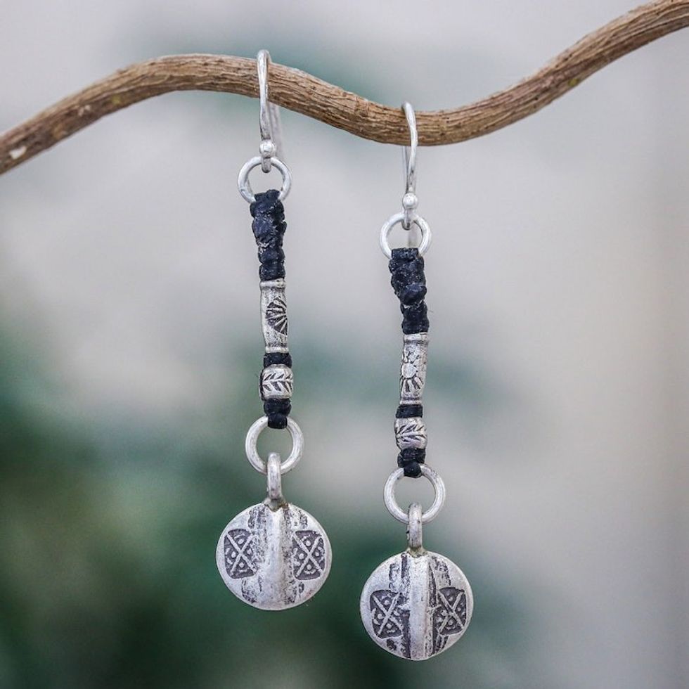 Unique Hill Tribe Silver Dangle Earrings 'Tribal Art' Item ID: 2671640944